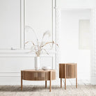 A side table that will add a sculptural element to any space Designed by Ukrainian designer Pavel Veltrov with a minimalist expression that highlights the luxurious materials. Handcrafted in FSC®-certified oak.