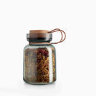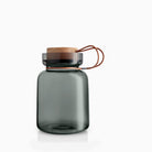Elegant and attractive kitchen storage jar for your raw ingredients – for example dried chillies or raisins. The unique and decorative mouth-blown glass is beautiful in its own right. At the same time, the smoke-coloured glass protects the contents from sunlight, preserving flavours and colours. The lid is quick and easy to remove and replace, and seals the jar tightly. The jar is dishwasher-safe. The lid and leather strap are easy to clean with a damp cloth.