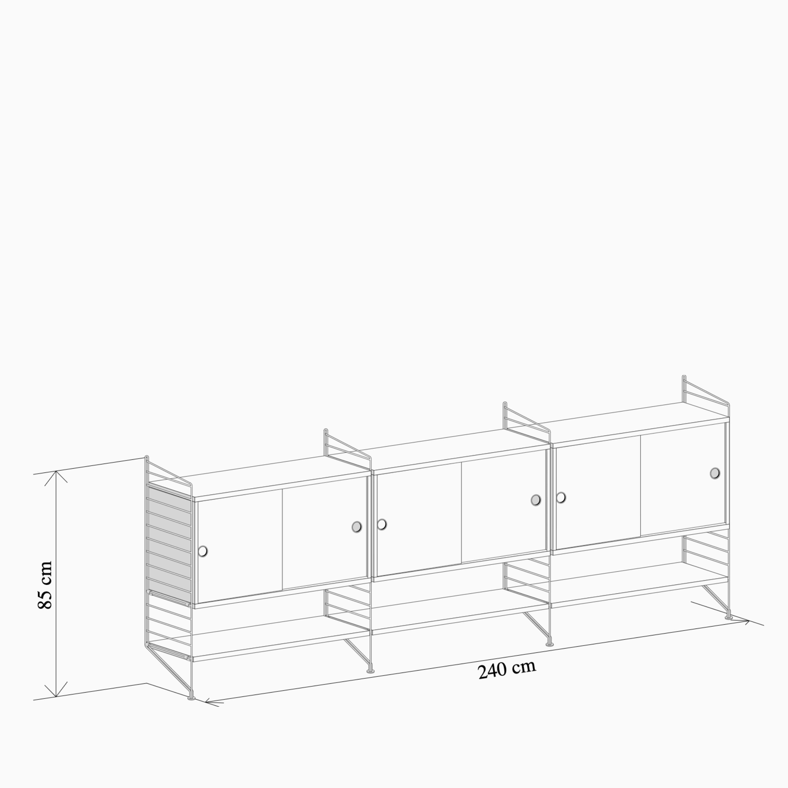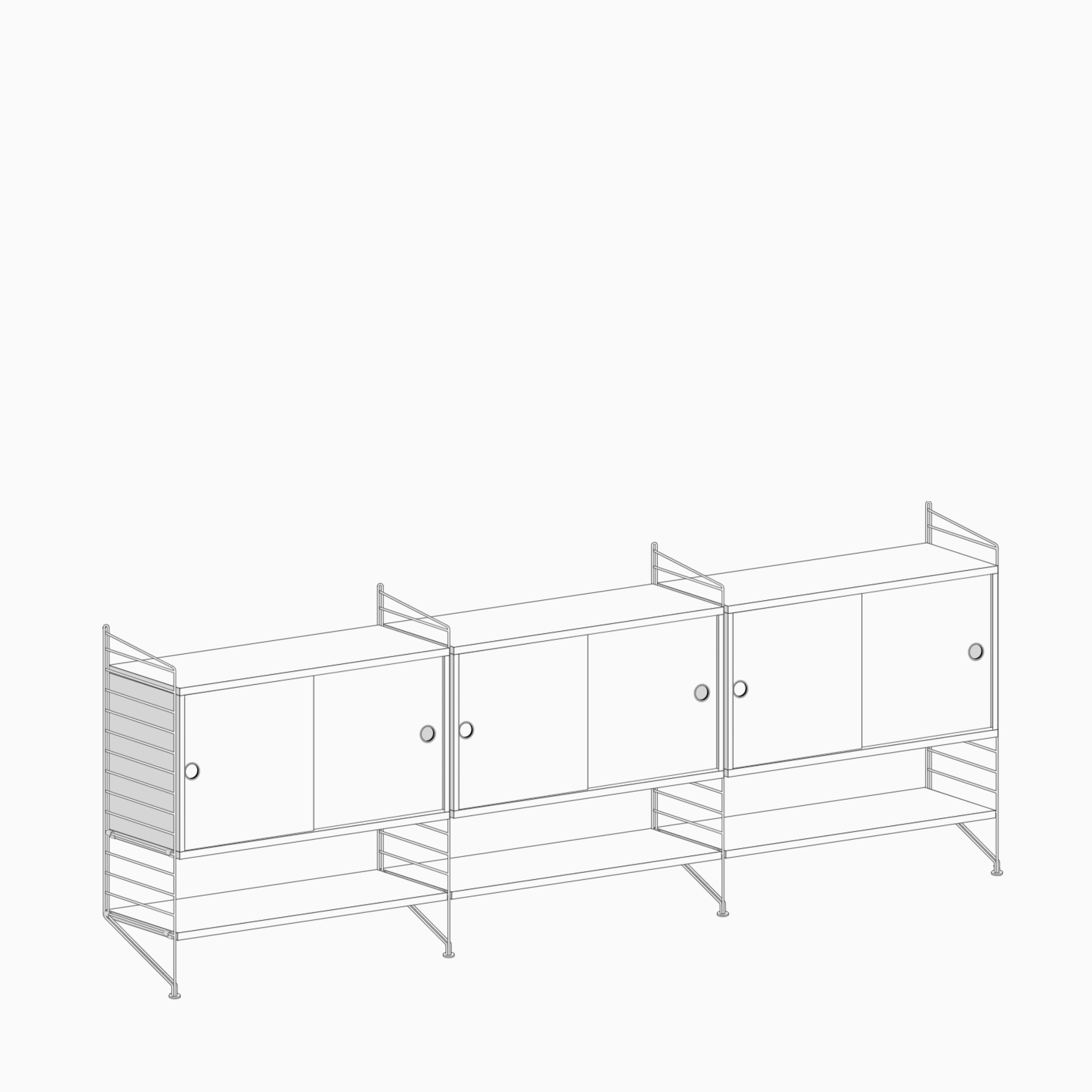 The String system is a series of components featuring the classic wire panels that offer almost unlimited combinations perfect for room. Choose among a wide range of colours and materials to build your own personal shelving system.
