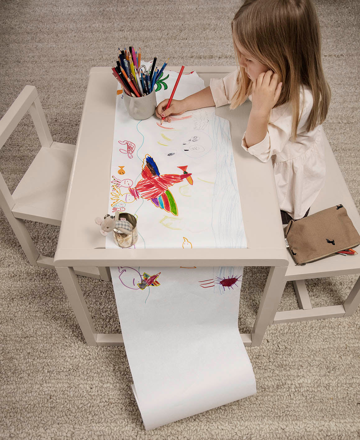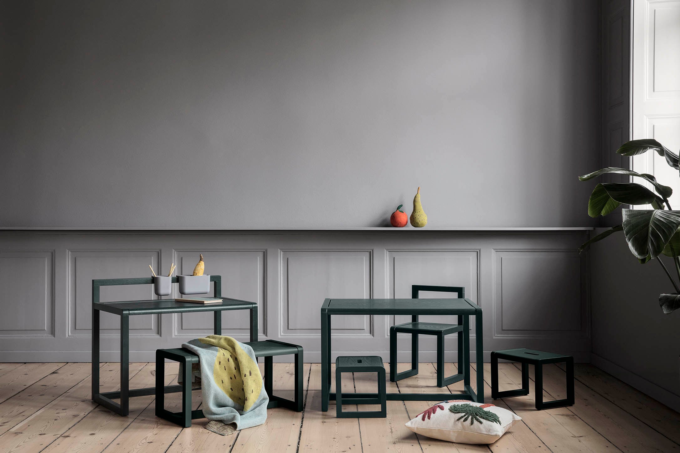 Make room for your little geniuses to shape and form ideas, throw small dinner parties or colour for hours. ferm LIVING's Little Architect series include a table, chairs, a bench and desk in five different colours that match so that you can mix them all together. The furniture is simple, contemporary design on children's level and the perfect base for the little ones to unfold their creativity.