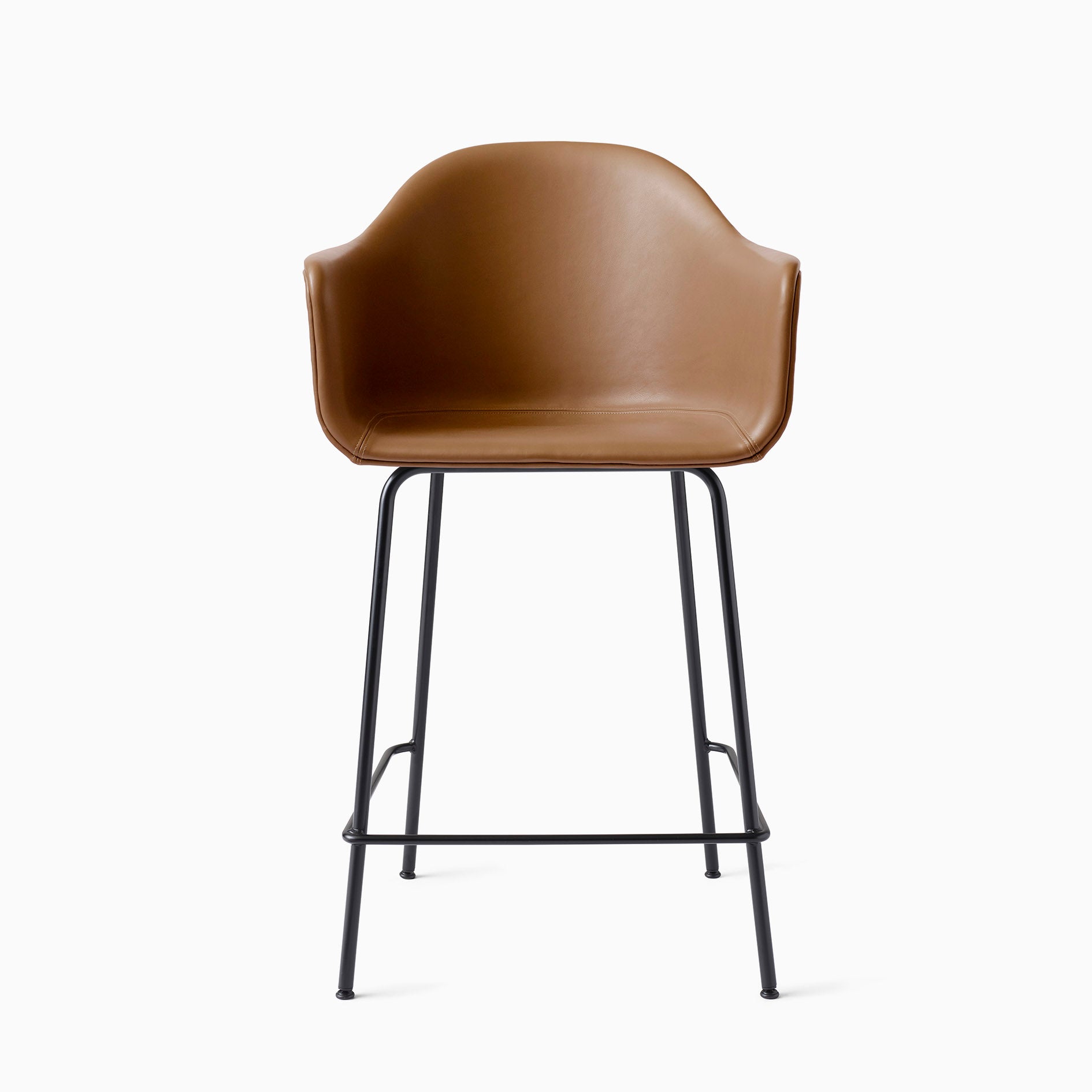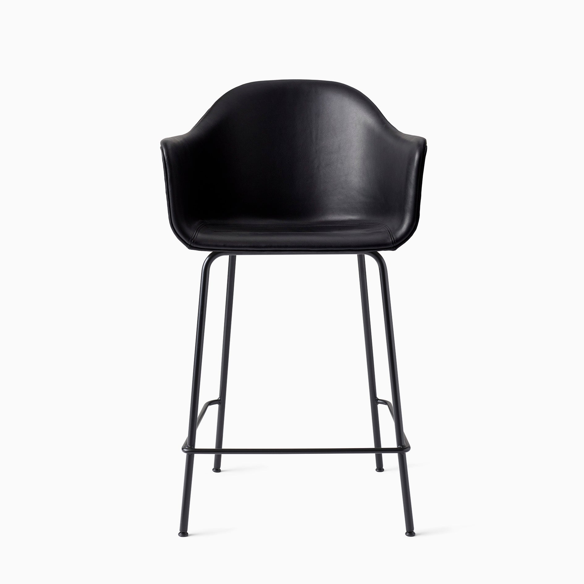 Whether you love to eat, work and hang out at the countertop bar, or prefer the elevation of the high top, the new bar and counter versions invite you to pull right up. The slender and sculptural geometric bases are designed with a comfy crossbar for the feet at just the right height to prolong comfort and keep your posture in top form. The bases are available in black or light grey powder coated steel. MENU offers various Harbour counter/bar Chair variants available for expedited delivery.