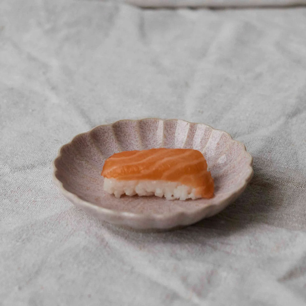 The Sheru Scallop Dish is one of our favourites. Featuring little scalloped edges that resembles the petals from a chrysanthemum flower and a dusty pink glaze, we use it to hold our jewellery on our dresser and to serve condiments and pickles for dinner.