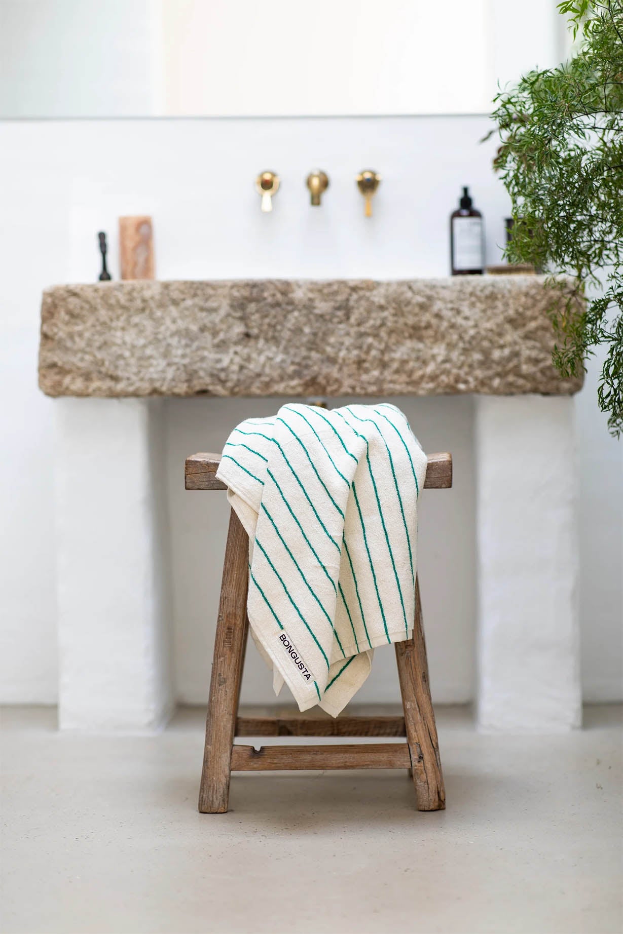 Bongusta Naram Hand Towel - Pure White & Grass