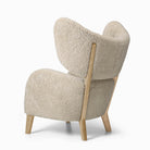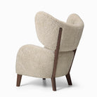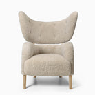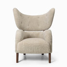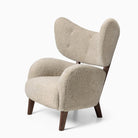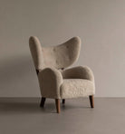 Designed by Flemming Lassen in 1938, My Own Chair is an original and eye-catching piece of mid-century Danish modern design. Upon launch it received much praise for its sculptural form with distinctive wings, yet its complex two-part silhouette made it unsuitable for mass production until the advent of modern techniques. Its lumbar supportive, rounded, angled seat and extended backrest cocoon the sitter in comfort. Wooden legs and expert upholstery complete the design. A corresponding footrest adds to the sense of ease. Said to be Lassen’s favourite chair, it stood at the designer’s home until his death in 1984.