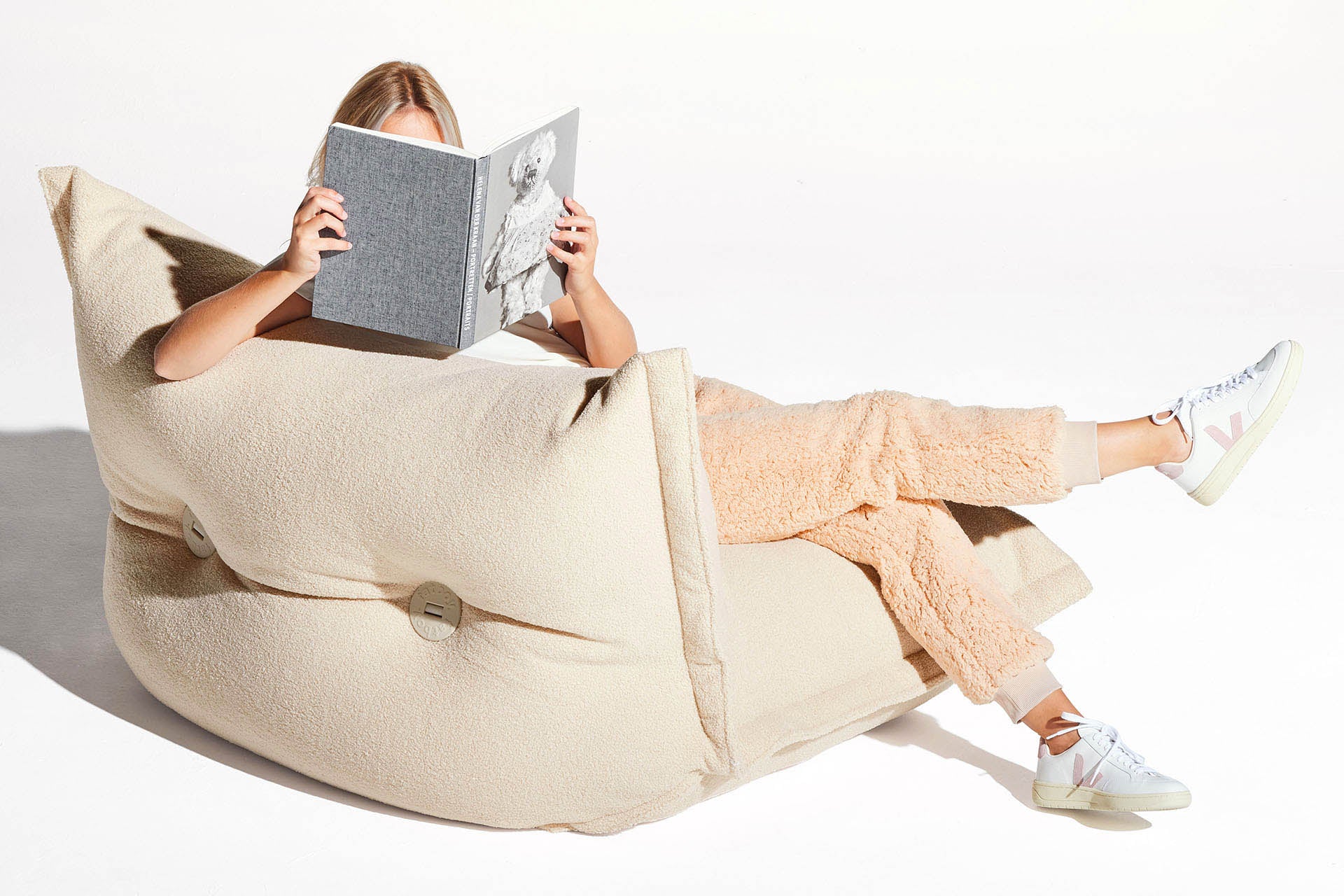 The BonBaron Sherpa is a giant of an relaxing armchair that makes you feel as if you are sitting on a huge cloud. You can easily adjust the backrest by using the two tension straps, near the oversized buttons at the back. A cover of lammy-like fabric makes this adjustable armchair even more cuddly and it can be cleaned in a washing machine.