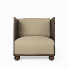 Inspired by brutalism, the Rum Lounge Chair presents a piece that is at once both comfortable and beautiful. Made from solid, stained and oiled FSC™ certified pine, the chair's frame features tall, impactful armrests that create a sheltered, cube-like space for the person sitting down. Large, tactile cushions upholstered with 100% linen draw you in and make you long for calm, relaxing moments.