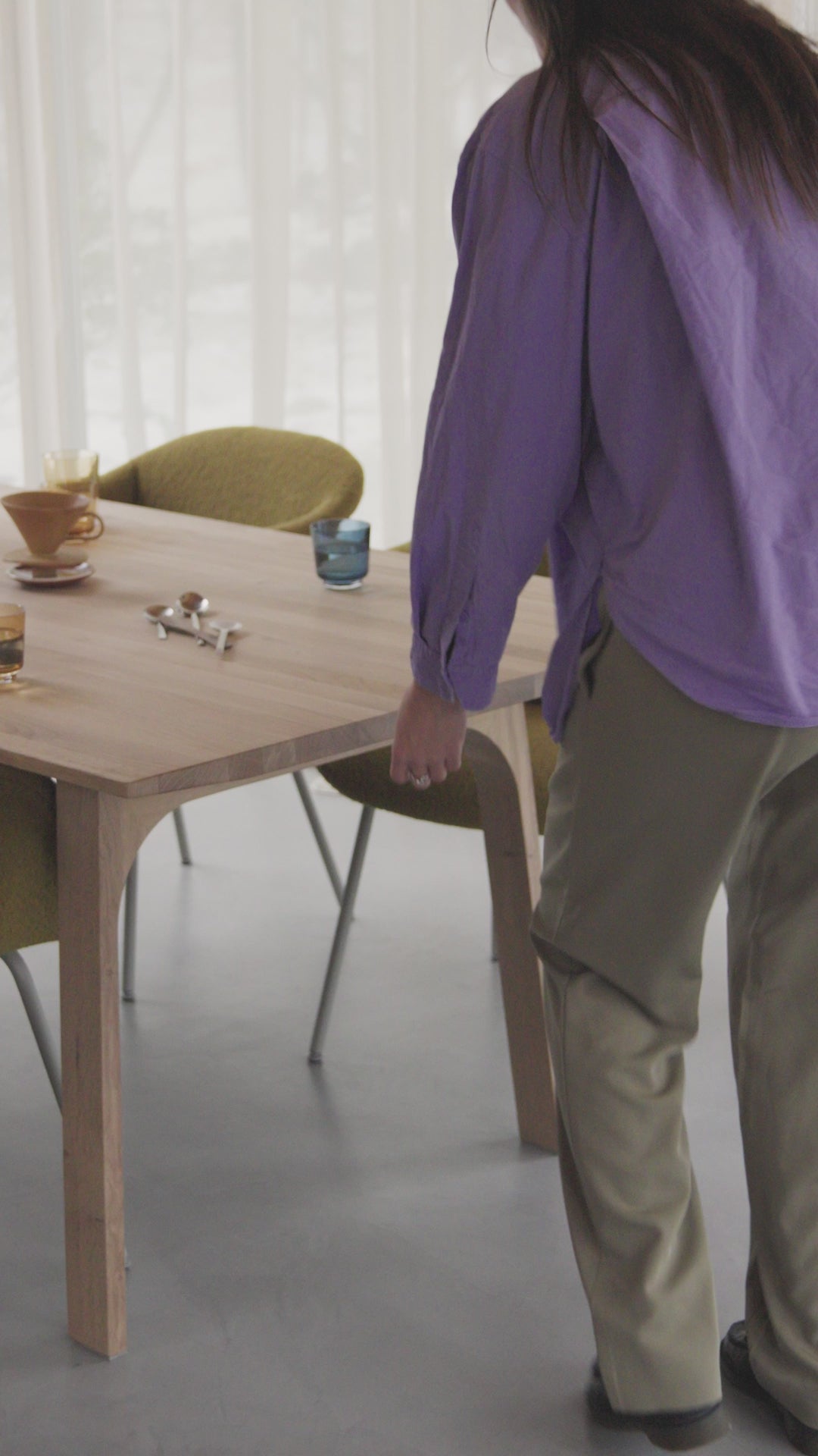 The Earnest Extendable Table brings new perspectives to the timeless Scandinavian wood table. Made from FSC™️-certified (FSC-C028824) wood, it features sculptural arched legs, a clear-cut profile, and a light expression tabletop. The table extends with manual apron pulls and a secure lock, all crafted in solid oak, seamlessly concealing its dual functionality. Available in two sizes, the smaller size comfortably fits 6 seats, expanding to 10, while the larger version accommodates 8 and extends to 12 seats — keeping the same shape once extended, with the extension leaves' wood grain going in a different direction than the table's, adding a unique touch.
