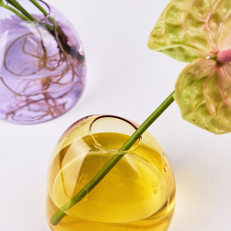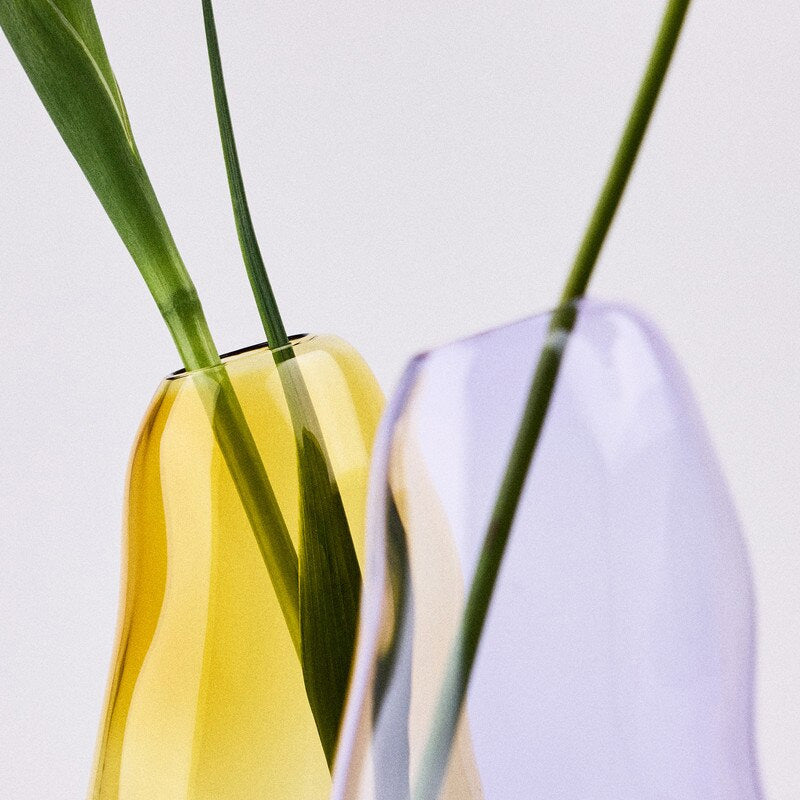 Perfectly imperfect, the casper vase offers gentle support for single blooms or smaller floral arrangements. Fill with water to prolong life or alternatively try a dry ikebana arrangement. This vase is ideally placed upon smaller shelves, desk spaces or within cosy nooks. Handcrafted in thicker than usual borosilicate glass, its translucent form cuts a fluid silhouette, while the asymmetrical form wobbles its way upward in search of light. Suited to flowers with a longer stem.