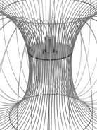 Coil is designed with the wish to create as much volume as possible with as little material as possible. Coil is characterized by its rounded rectangle shape created by curved stainless steel wires. The air between the wires makes the design appear light and airy despite its immense volume, making air as equally important for the design, as the material itself.