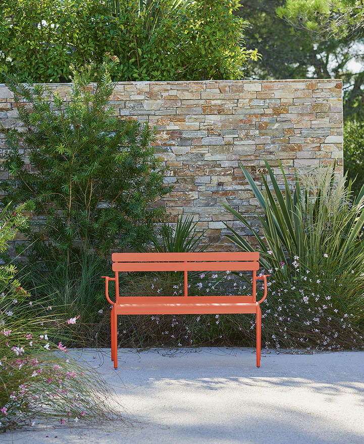 An aluminium garden bench designed by Frédéric Sofia is one of the many pieces available in the Luxembourg collection.
