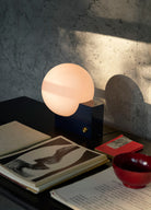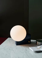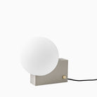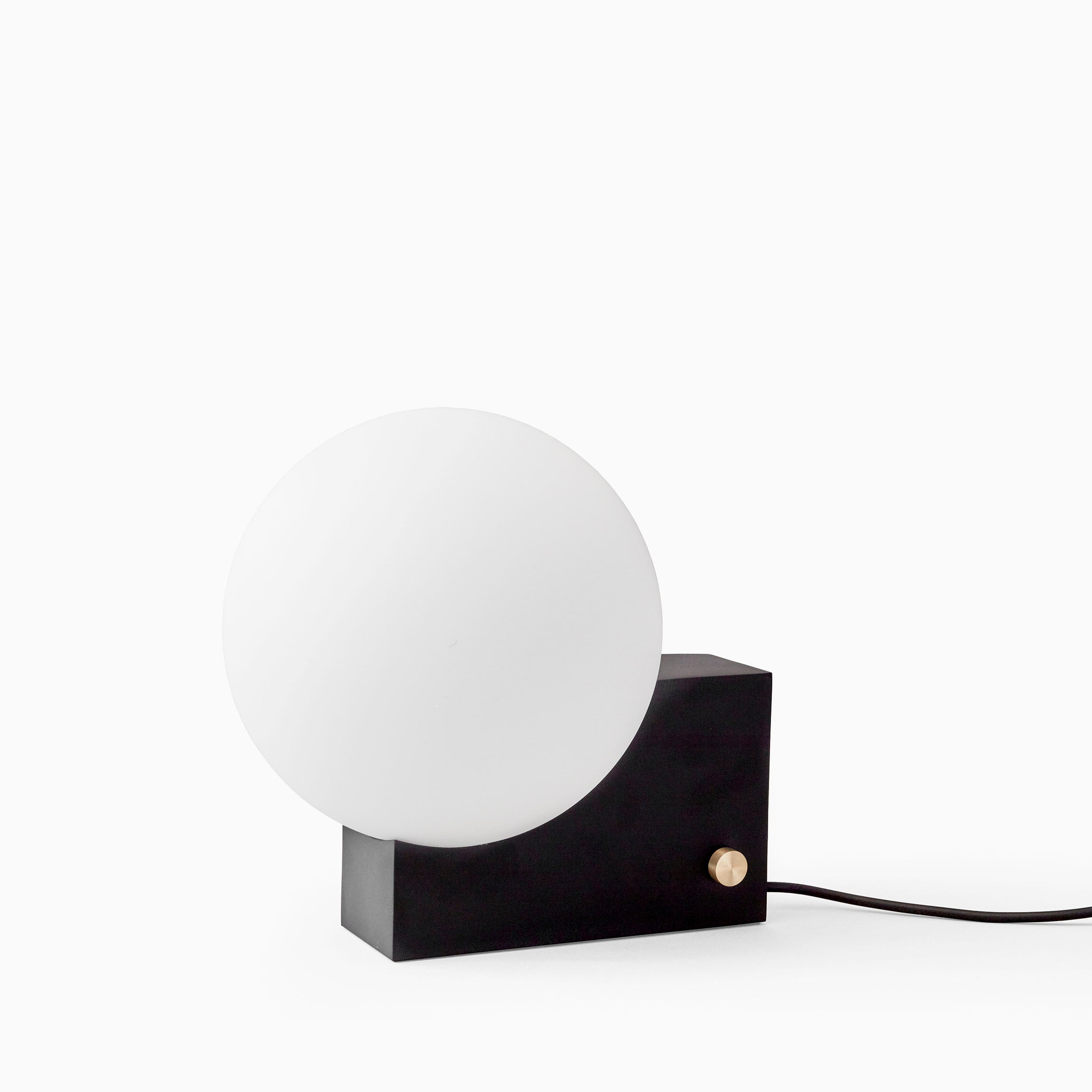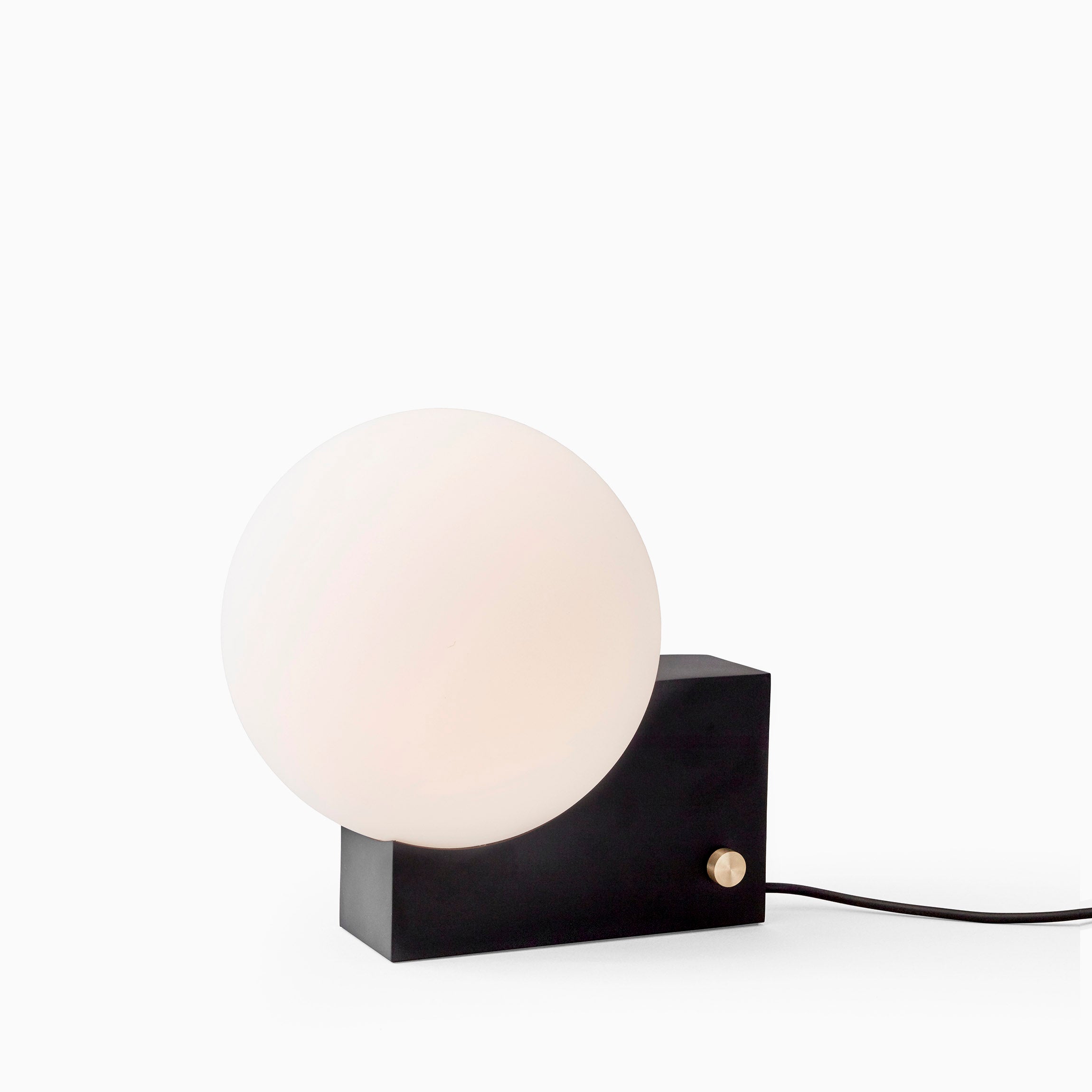 Denoted by its cubic base and curved opal shade, the Journey lamp exhibits an interplay between solid and translucent forms. With its sleek and geometrically playful character, the Journey lamp is a visually striking yet functional addition to any room.
