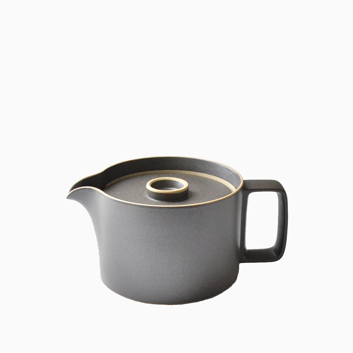 You can choose between Natural, Grey and Black Hasami teapots. Black has a smooth finish, while natural has a textured finish. With its recessed edge, the teapot appears to float on the table.